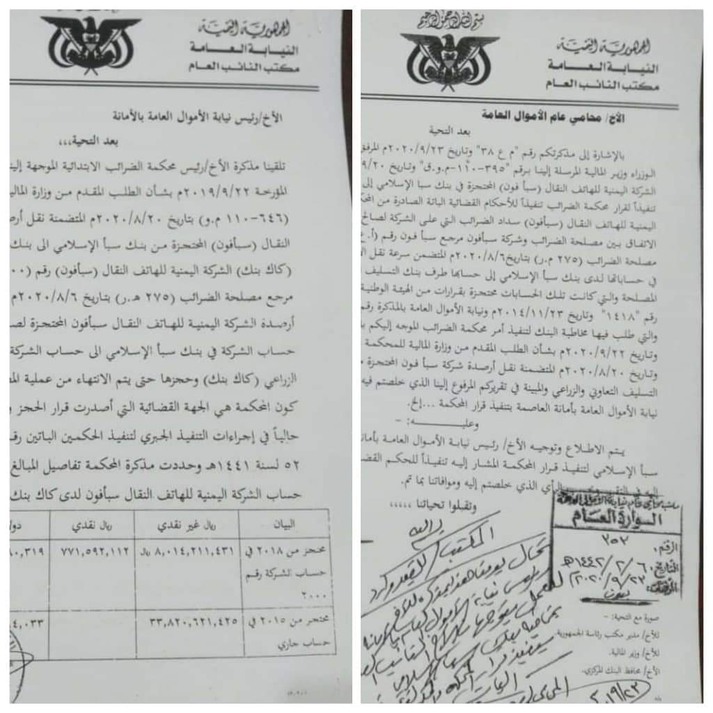 وجهت جماعة الحوثي عبر نيابة تابعة لها بنقل أكثر من 33 مليار ريال يمني، و23 مليون دولار، من أرصدة شركة سبأفون في بنك سبأ الاسلامي، إلى حسابات بنك التسليف التعاوني الخاضع لسيطرتها.