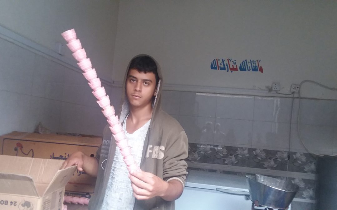 ينهضون في الـ5 صباحاً، ويتجمعون في ركن الحارة، ثم يختصرون الطريق عبر الأزقة والحواري التي توصلهم إلى حي الطيران، ومنه يدخلون شارع 20 ليصلوا في الـ6 إلى المعمل، معمل صغير جوار المدرسة، لأن صاحبه الذي يتعاملون معه، متساهل في أسعاره، يبيع لهم الكيلو الواحد بـ200 ريال، وأحيانا بـ180 ريالاً، وهو سعر يقل بـ50 ريالاً عن السعر الذي يفرضه مالك المعمل الكبير، فيما ثمن أقماع البسكويت التي يشترونها منه أرخص بريالين لكل واحد منها من سعرها هناك.
