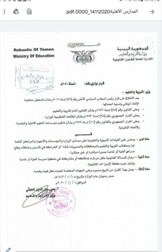 أصدرت جماعة الحوثي قرارت تقضي بمنع القيادات التربوية والتعليمية ومن يعملون في السلك التعليمي بمناطق سيطرتها من امتلاك أو المشاركة في فتح مدارس أهلية.