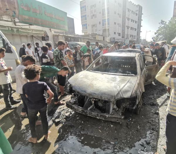 اندلع حريق بسيارة أجرة لمواطن وسط شارع الدرة بمدينة عدن.