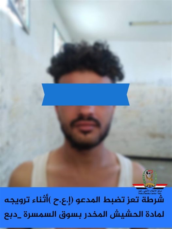 ضبطت الأجهزة الأمنية بشرطة محافظة تعز (جنوب غرب اليمن) شخصا يقوم بترويج مادة الحشيش المخدر بسوق السمسرة _دبع.
