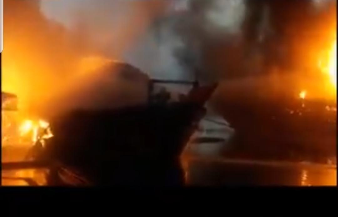 تداولت وسائل اعلامية وناشطين فيديو يظهر نشوب حريق  في عدد من السفن كانت في ميناء كناوة في ايران.