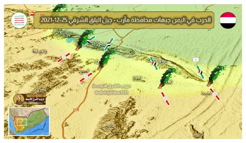 وأضافت المصادر، أن معاركا ضارية اندلعت عقب ذلك بين الجانبين، امتدت من البلق الشرقي لتشمل عديد مواقع في جبهة الأعيرف. إلى الشرق من مديرية الجوبة جنوب مأرب.