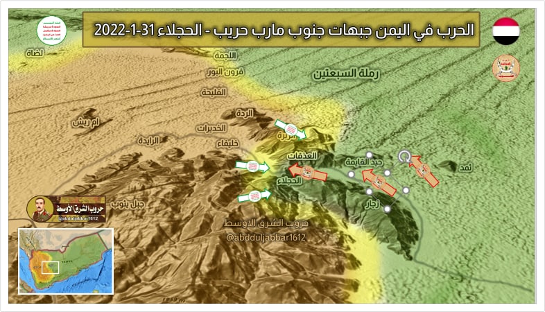 وأضافت المصادر، أن قوات العمالقة خاضت أيضا معارك مماثلة مع المليشيا الحوثية في العديد من المواقع على سلسلة جبال وعقبة ملعاء الاستراتيجية، الفاصلة بين حريب والجوبة.