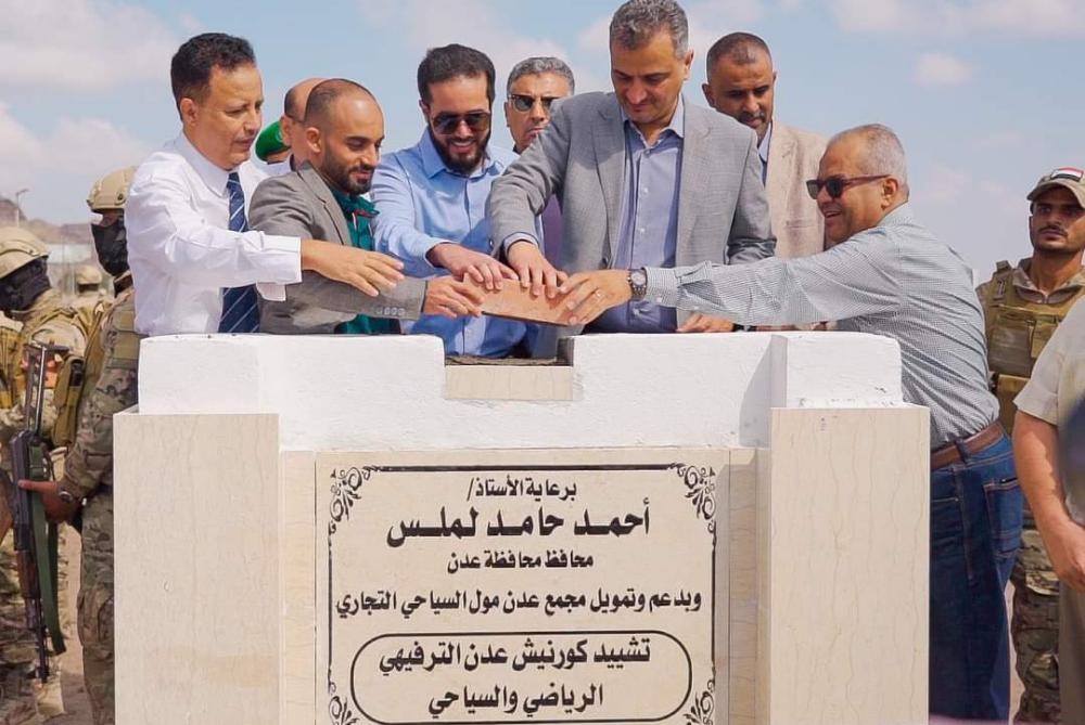 وضع محافظ عدن أحمد حامد لملس ومدير عام صيرة الدكتور محمود الجرادي حجر الأساس لتشييد كورنيش عدن الترفيهي الرياضي والسياحي بدعم من مجمع عدن مول التجاري .
