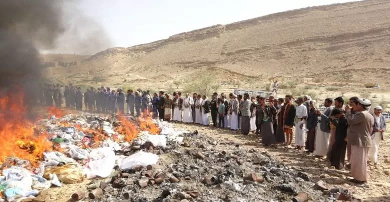زعمت مليشيا الحوثي الإرهابية إتلاف 40 طناً من الحشيش المخدر في صنعاء، الأحد 26 يونيو/ حزيران 2022م، وسط موجة سخرية واسعة اجتاحت رواد مواقع التواصل الاجتماعي تشكك بالرواية الحوثية.