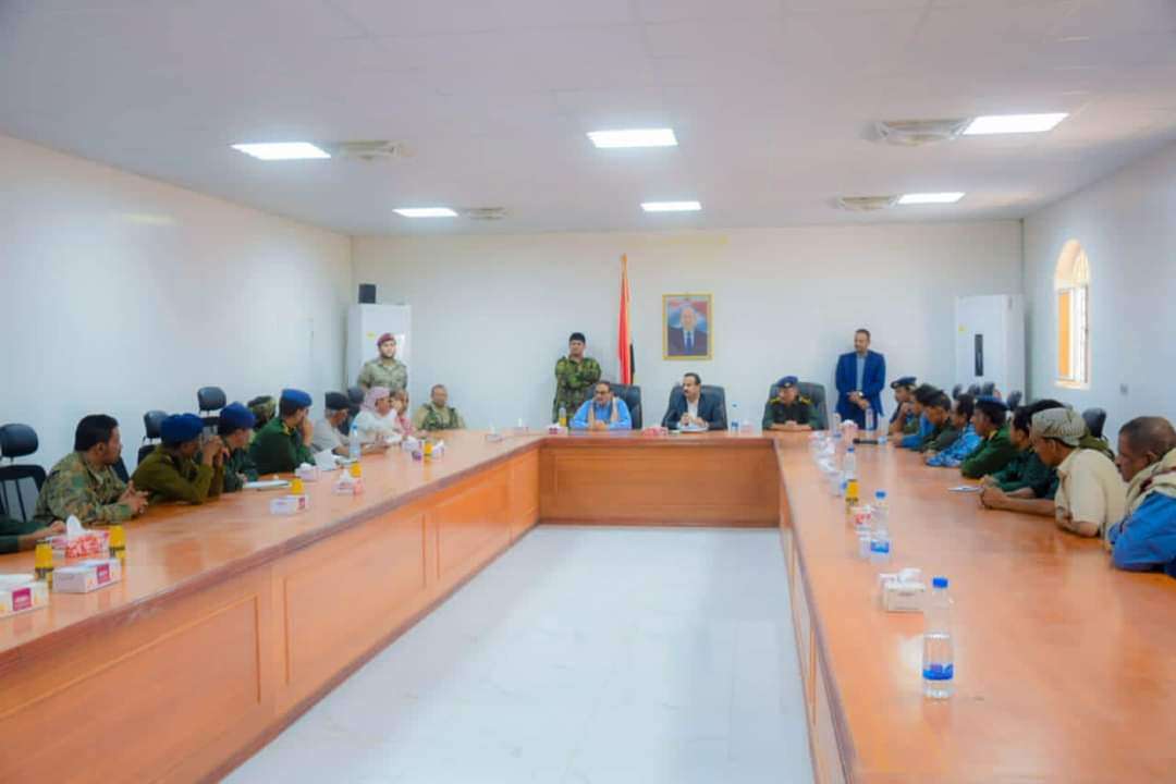 وبحسب بلاغ نشر في صفحة المكتب الإعلامي لمحافظ شبوة، فإن الاجتماع، خُصص لمناقشة التطورات الأمنية والاستعدادات الأمنية والعسكرية، للحفاظ على السكينة العامة وتثبيت دعائم الأمن والاستقرار في المحافظة.