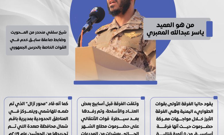 شيخ سلفي منحدر من المحويت، وضابط صاعقة سابق خدم في القوات الخاصة بالحرس الجمهوري